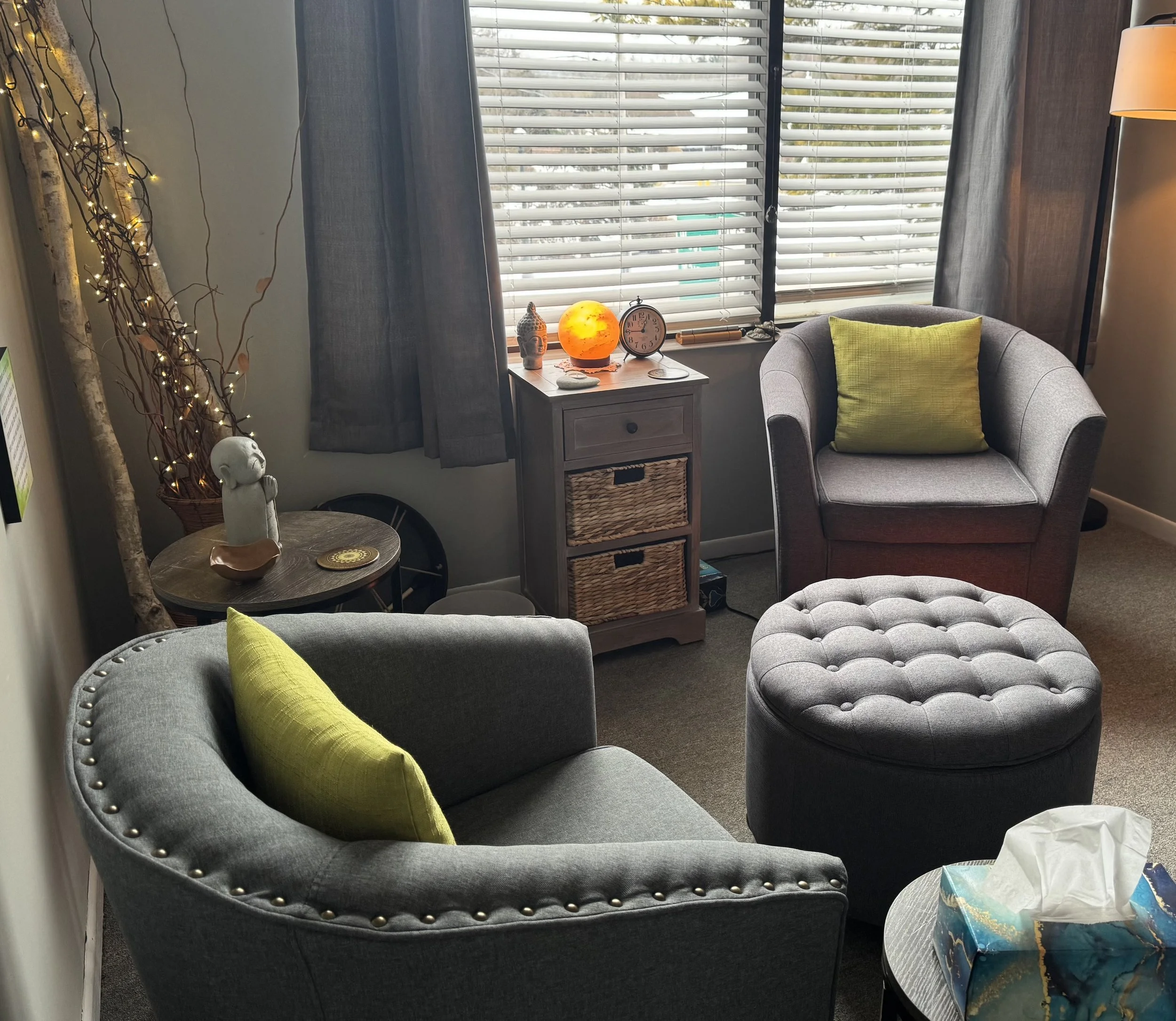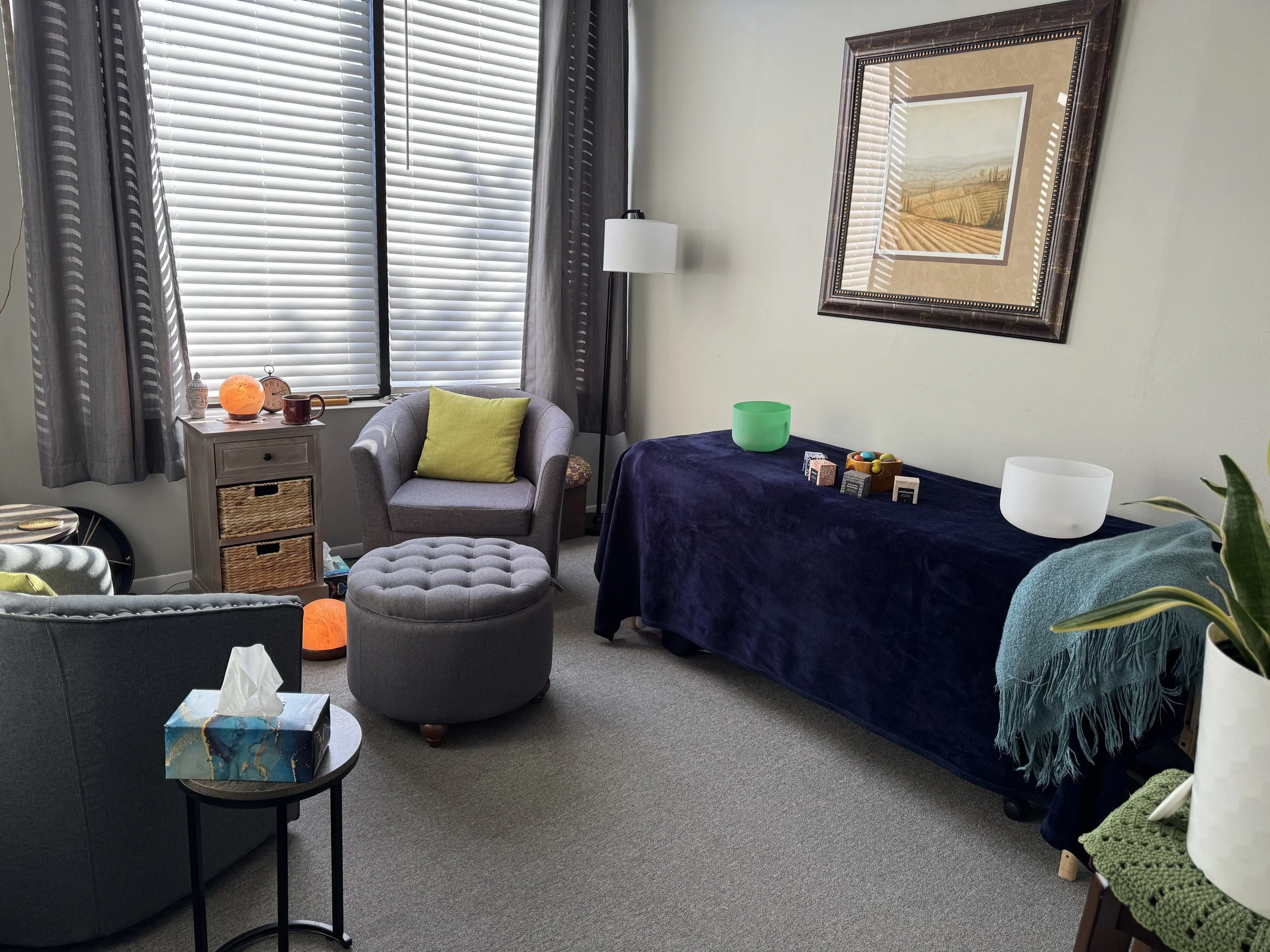 This space is shared between two practitioners doing the good work of bringing calm and centering to those who enter. Donna Brooks, LCSW is a mental health counselor and Ieva Scoggin is a massage therapist. Two good friends creating a welcoming space for healing.